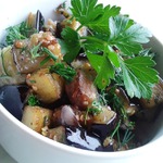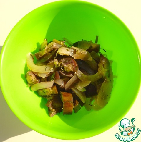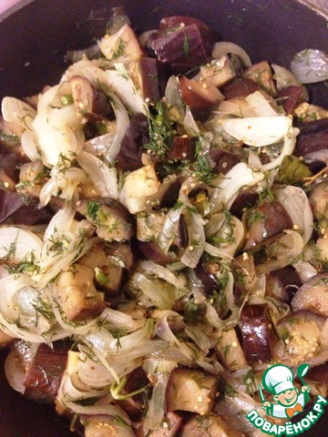 Введите баклажаны, обжарьте (1 минуту) часто помешивая (я их перемешиваю подкидывая на сковородке). Баклажаны не должны быть готовыми.
