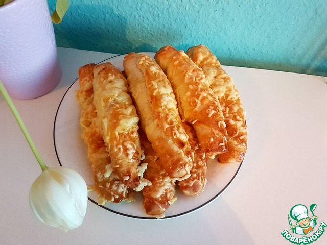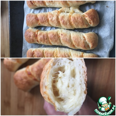 Выложить с противня, накрыть полотенцем. Вот такая сырная структура багета. Приятного аппетита!!!
