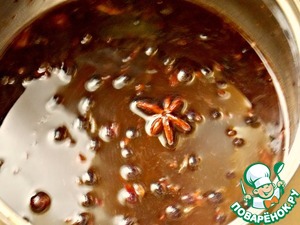 • В кастрюлю положить смородину, специи, сахар и влить вино. Подогреть почти до кипения и снять.