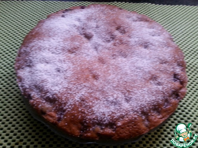 Выпекать в разогретой духовке (t=180 С) около 50-60 минут, до сухой зубочистки. Готовый пирог остудить и посыпать сахарной пудрой.