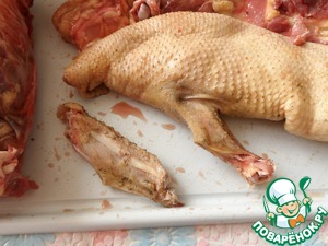 Крайнюю фалангу у крыла отрезаем совсем. А другую и ножки обрезаем "обчёсывая" косточки с середины. Да, на ножках сначала снаружи