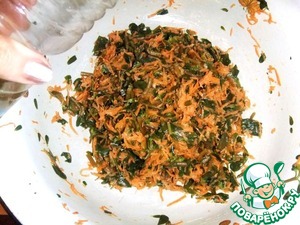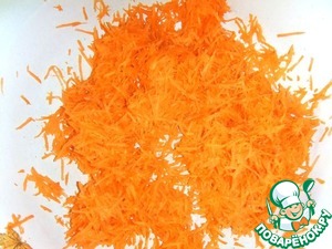 Посолить морковь двумя-тремя щепотками соли и слегка потереть в руках.