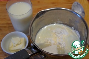 В молоке растворить сахар и 2 ст. л. со средней горочкой пудинга.