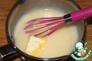 Постоянно мешая, варить массу на среднем огне до загустения. Добавить сливочное масло и снять с огня. Остудить, периодически помешивая, чтобы не образовалась пленочка.