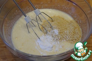 Добавить измельченные в очень мелкую крошку орехи, разрыхлитель, оставшийся пудинг.
