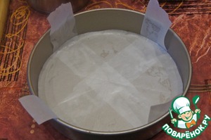 Форму застелить пекарской бумагой и смазать жиром. -