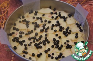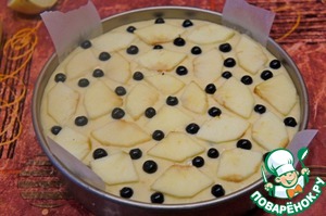 Накрыть оставшимся тестом, осторожно разравнивая его. По поверхности распределить оставшиеся ломтики яблок и чернику. Выпекать при 180*С около 50-60 минут.