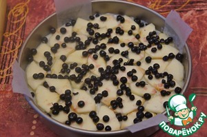 Затем выложить еще один слой яблочных ломтиков и снова посыпать черникой.