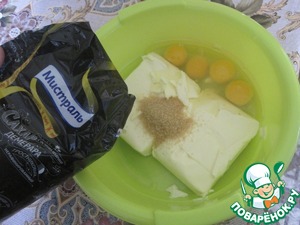 Готовим бисквит. Масло сливочное соединяем с яйцом и сахаром (у меня ТМ Мистраль)