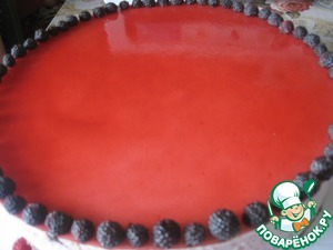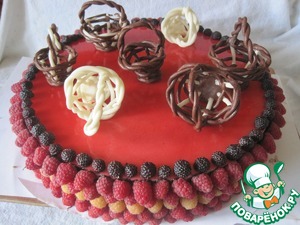 Выкладываем черную малину в виде бордюра, приклеивая растопленным шоколадом