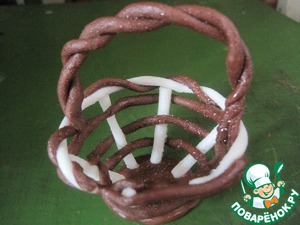 Готовим украшения. Из меда и шоколада замешиваем массу для лепки. Начинаем собирать корзинки