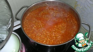 Варить до закипания, после убавить огонь и варить еще 30 мин. За 5 мин до готовности влить уксус. Перемешать.