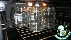 Чистые банки поставить в холодную духовку и постепенно увеличивать температуру до 150 градусов, подержать банки в духовке еще 15 мин.