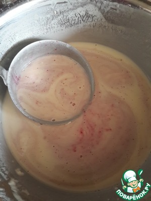 Теперь ввести в тесто малиновое пюре и размешать до однородности