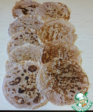 Испечь блинчики. Выходит около 25 шт.