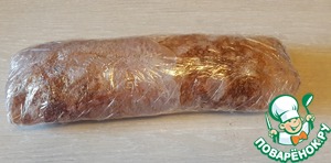 Свернуть рулетом плотно. Завернуть рулет в пленку и убрать в холодильник на 3-4 часа до полного остывания.