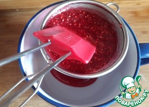 Свежую малину измельчить блендером и протереть через сито