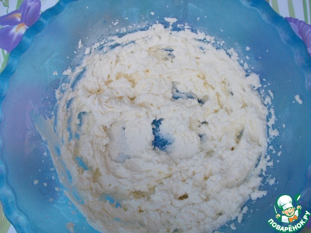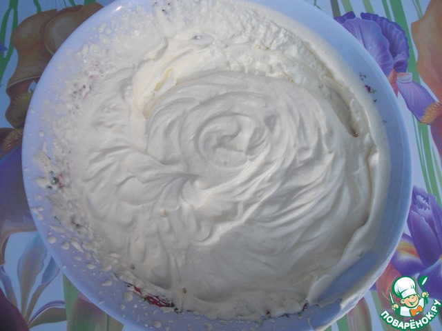 Сливки взбить венчиком с лимонным соком. На поверхности должны оставаться следы от венчика.