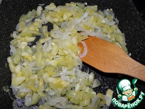Лук обжарить, добавить к нему кабачки и чеснок, потушить минут 7