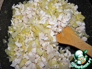 К готовым кабачкам добавить курицу. (специи не забываем)