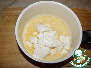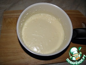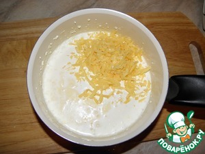 Далее влить сливки, и добавить муку. Все хорошо перемешать
