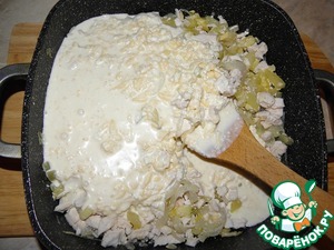 Соединить эту массу с кабачками и курицей, все хорошо перемешать, проверить на специи.
