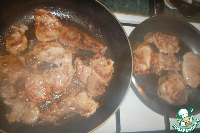 - Мясо (У меня был кусочек свинины и 1 "колбаска" телячьей вырезки. В оригинале рецепта 4 свиных стейка) — 500 г