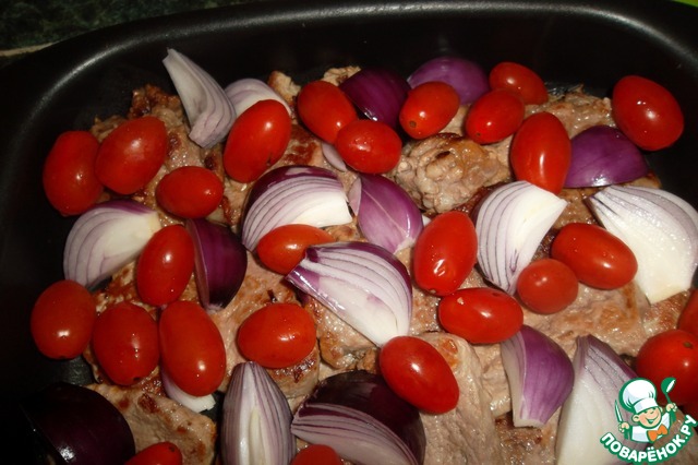 Рецепт «Мясо с маслинами и помидорами черри»:
