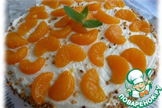 Поместить корж в кольцо или разъемную форму. Он должен лечь очень плотно прилегая к форме со всех сторон. Пропитать с помощью кисточки. -