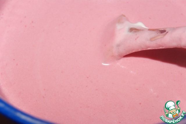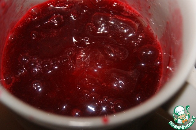 Мусс. Малину 600 г протереть через сито. Отложить в небольшую емкость 5 ст. л. пюре. -