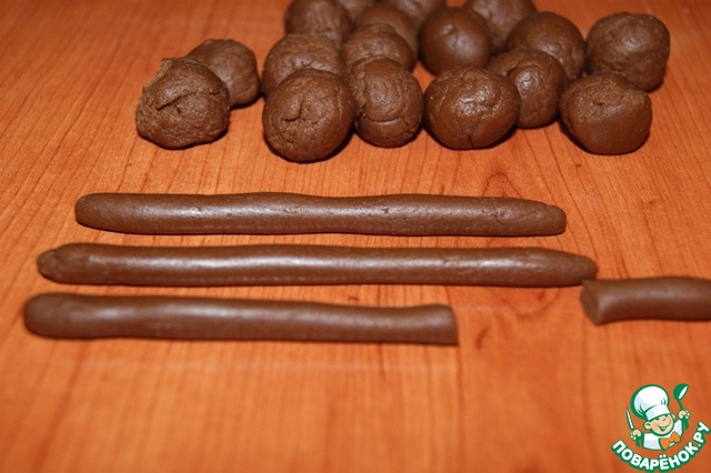 Для "плетения"нам понадобится раскатать 24 вертикальных прутика, длина которых будет чуть больше высоты торта, у меня он 6,5 см, соответственно длина прутьев - 7 см.