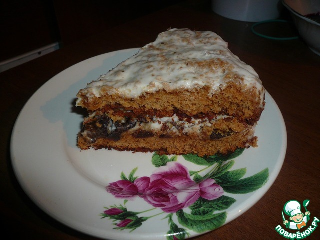 Действительно по этому рецепту получается пышный, легкий, пористый бисквит. Пекла в мультиварке, поднялся почти до самой крышки. Разрезала на 4 коржа. Крем сметанный (сметану 20% не отвешивала, просто взбила с сахаром, поэтому крем жидковат немного, бисквит пропитался очень хорошо, тортик получился "влажный"), прослойка между коржами - чернослив и грецкие орехи, сверху покрыла шоколадной глазурью. Хорошее сочетание медового и шоколадного вкуса с черносливом и орехами. Торт быстро исчез, хотя готовила просто для семьи.