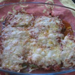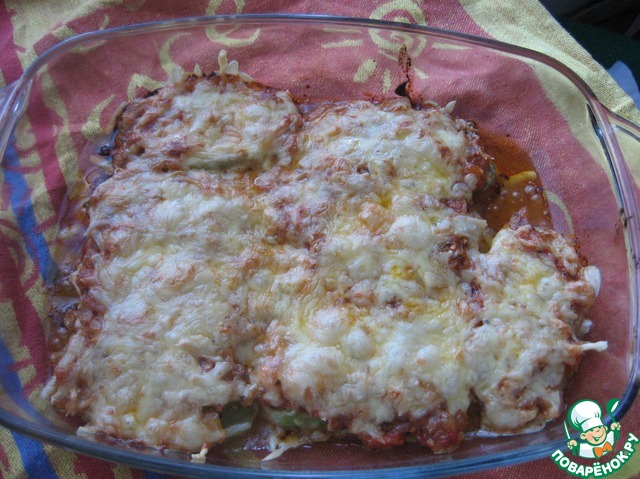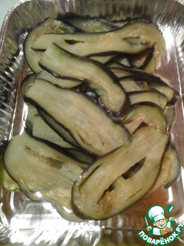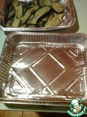 Уложить слоями баклажаны.
