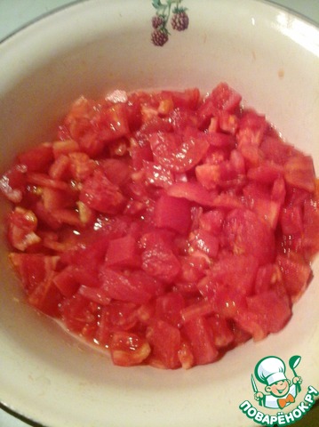 Помидоры очистить от кожицы, мякоть нарезать кубиками.