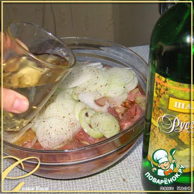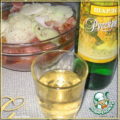 порезать луковицу, смешать с индейкой, посолить, вино - сухое