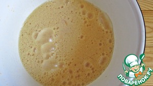 Сливочное масло нужно растопить. Яйца с солью взбить в пену и, не прекращая взбивать, влить масло.