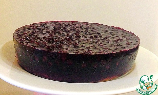 Затем я "окольцевала" маковый корж разъемной формой, залила сверху желе и с чистой совестью убрала в холодильник на 2 ч. Но форма немного подвела меня, и желе попало на боковые части. Вкус и внешний вид не пострадали, поэтому я на неё сильно не обиделась. :) А небольшие "разливы" желе внизу пирога собрала ложечкой и положила на пирог сверху.
