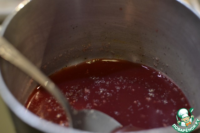 Добавляем сахар и подогреваем до растворения желатина и сахара, постоянно помешивая, не давая закипеть. Остужаем и отправляем в холодильник до легкого застывания, у меня желе застывало 3 часа