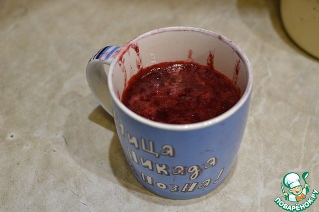 Соединяем набухший желатин и малину, общий объем около 600 мл.