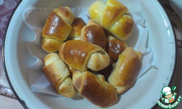 Быстренько делаем глазурь: выжимаем сок 1/4 лимона и смешиваем с сахарной пудрой. Как только наши роглики зарумянились, мы их достаем из духовки и горячими перекладываем на блюдо. Быстро намазываем лимонной глазурью и... Приятного аппетита))) Главное до исчезновения рогликов успеть налить чай)))