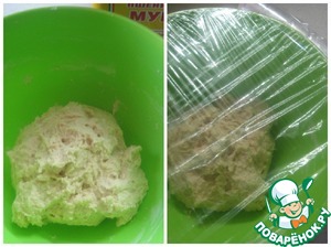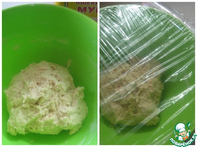 Кладем в миску, затягиваем её пищевой пленкой и оставляем для подъема часа на 4 в тёплом месте.