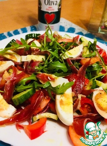 Разложить на рукколу нарезанные овощи. Произвольно.