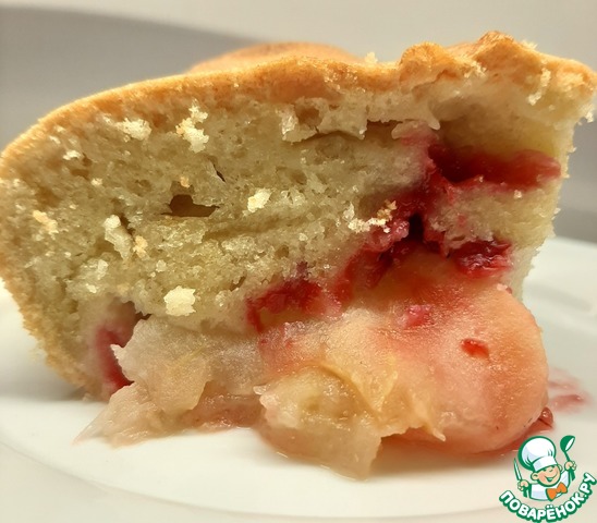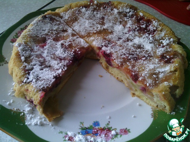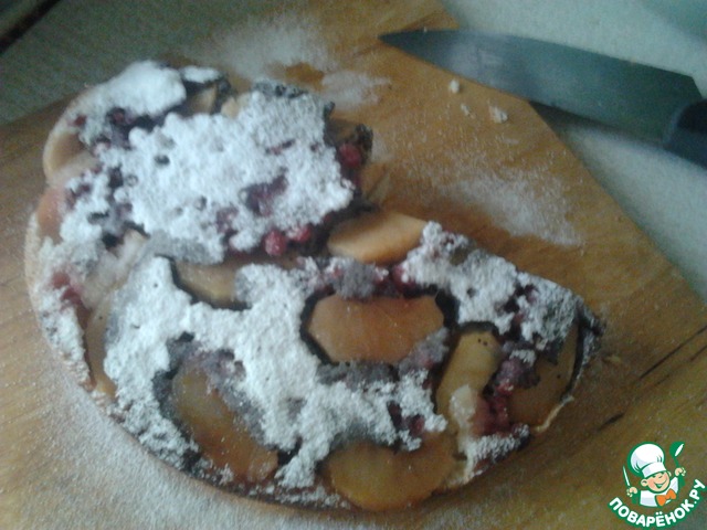 Сверху уложить дольки яблок, высыпать остальную смородину.