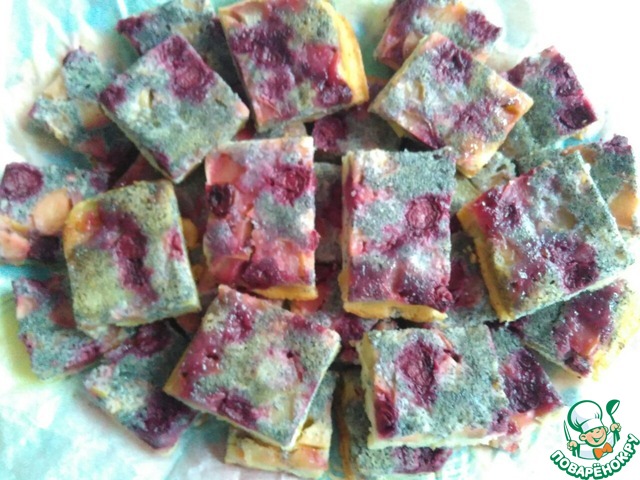 Пирог разрезать на квадратики и подавать, как пирожные.