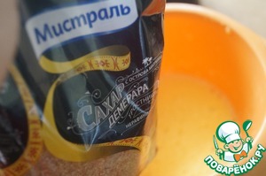 Желтки отделить от белков. В желтки добавить сахар и хорошо взбить в достаточно пышную массу.