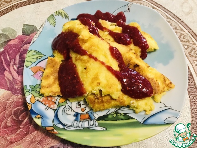 Готовый Императорский омлет режем кусочками и подаем с малиновым кули. Приятного аппетита!