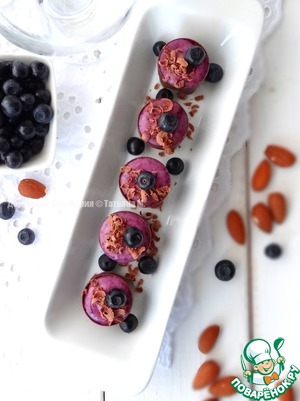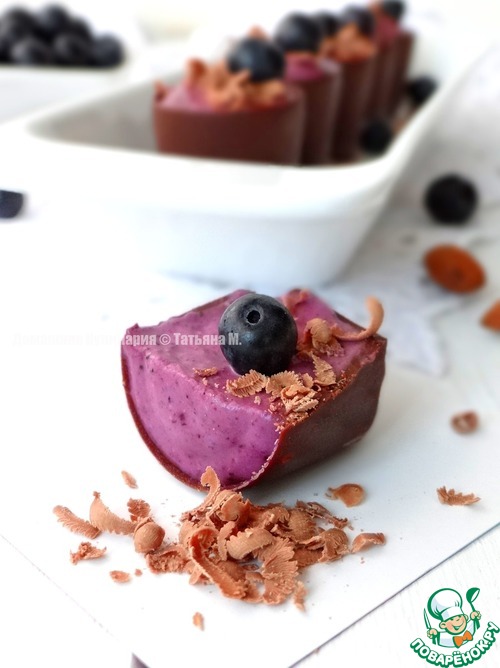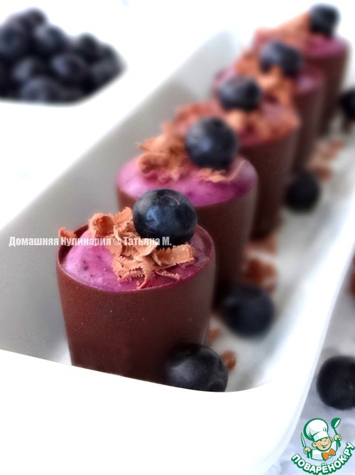 Черничный десерт с миндалем и шоколадом, на основе молочных продуктов с коричневым сахаром! Нежный вкус, полезный состав в малюсеньких шоколадных стаканчиках - придется по вкусу и детям и взрослым!