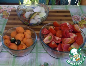 Овощи моем. Из абрикос удаляем косточки.