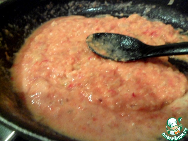 Обжарить на сливочном масле мелко порезанную луковицу, добавить муку, прогреть, добавить молоко и томатный сок, посолить, варить до загустения.