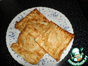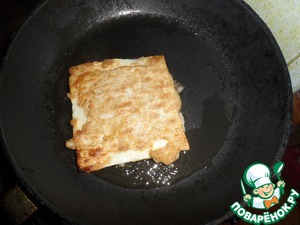 Разогреваем сковороду с небольшим количеством подсолнечного масла и выкладываем конвертики. Обжариваем с обеих сторон.